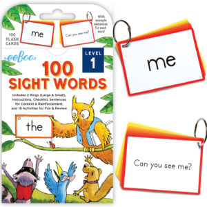 eeBoo’s well-considered version of a fundamental educational tool. Sight word flash cards include 100 high frequency word flash cards, 18 learning activities, instructions, a checklist, and two rings to help children move through the deck of 100 cards by level. Level 1 includes high frequency simple words for children to learn through memorization, creating a foundation for literacy. Each flash card has the Sight Word on the front and a sentence to provide context on the back of the card.Â