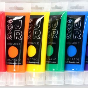 Unleash their inner Picasso with 6 super-washable, bright finger paints in easy to squirt tubes! 6 bold colors are all you need to mix and blend rainbows, ocean waves and everything the little ones dream up! The classic, tactile art activity brings joy for them, and the washability makes it worry-free for adults. Easy to clean off surfaces with soap and water. Non-staining!
