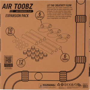 This expansion pack comes with enough tubes and connectors to double the length of your Air Toobz build, plus 10 extra balls to keep the fun flowing. Explore and experiment even more endlessly with the Air Toobz Expansion Pack!