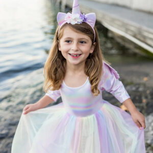 The Alicorn Dress features a flowing skirt with layers of tulle that will twirl and dance with every step, making your child feel like they’re soaring through the clouds. The bodice is adorned with a long sleeve iridescent spandex top & magical wings, inspired by the majestic features of the legendary alicorn. Let your little one’s imagination take flight with our iridescent Alicorn Dress, Wings & Headband!