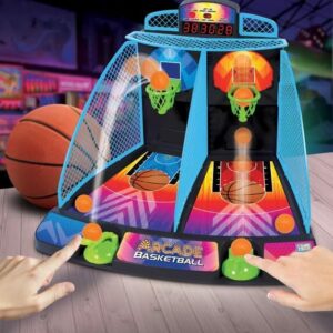 This is a fast paced exciting game that is great for the entire family. It combines skill and hand-eye coordination to aim and launch the basketballs into the hoops.