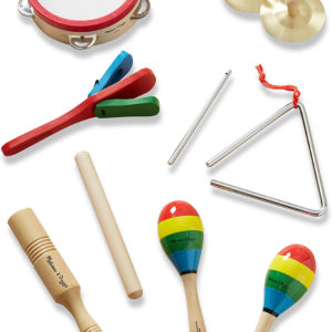 This musical set includes a tambourine, cymbals, maracas, clacker, tone blocks and a triangle. It’s everything preschoolers need to form a marching band, launch a solo career or just enjoy exploring music and sounds.