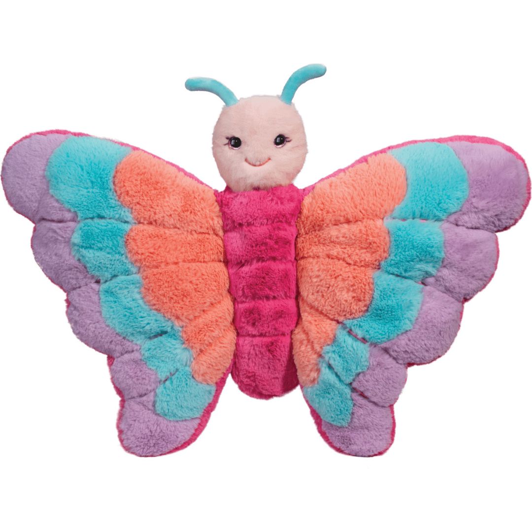 Bindi is a whimsical butterfly plush toy who brings joy wherever she goes! With her velvety soft wings and body in hues of bright pink, orange, blue, and purple, Bindi is a burst of color. Bindi’s plush body is made of high quality materials, is gentle to the touch, and her large size at 26.5 inches wide makes her a great cuddle companion for anyone who loves butterflies. Bindi’s happy expression and embroidered smiley face show her friendly and optimistic personality. Bindi is more than just a plush toy – She’s a great friend who turns ordinary moments into something special.