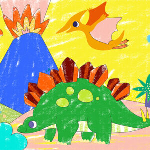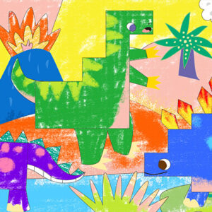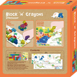 Avenir Blocks ‘N Crayons: DINOSAUR, 12 colors and 3 block shapes, 3 coloring sheets, in beeswax (10%), in box, 3+