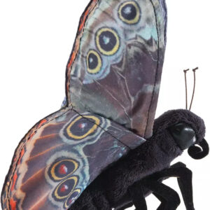 Imagination takes flight on enchanted wings with the lovely Blue Morpho Butterfly puppet. Your finger in the body of this graceful creature can easily flutter its wingspan to accent the gorgeous true to life underside patterning on luxurious sateen fabric.