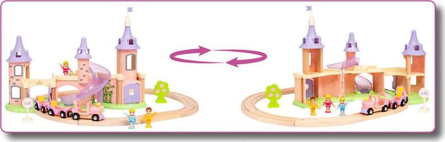 Explore the castle: Open the castle up like a doll house to discover all the spaces inside for singing, dancing and other creative character play. Ascend to the top of the tallest tower to look out over the wonderful world, then fly down the glittery castle slide to quickly get back to the train for a new fantastic adventure.