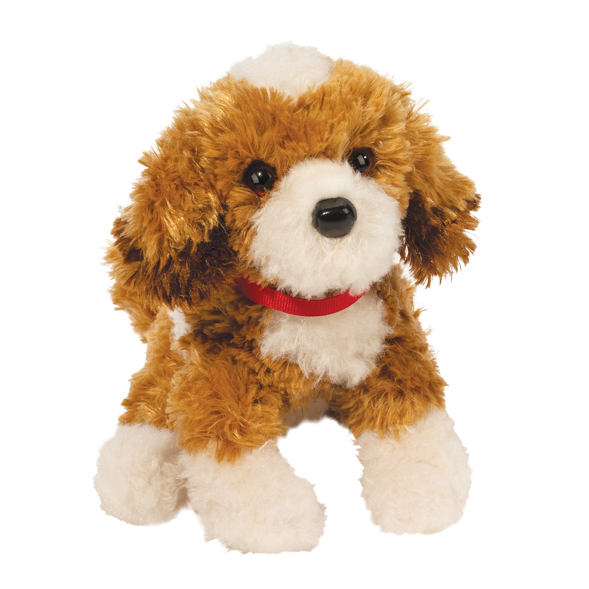 With a waggly tail and a warm-eyed expression that will melt your heart, Buttercup, Douglas’ mini Doodle Pup stuffed animal, is a sweet handful of puppy love! Her toffee colored coat is accented with creamy white patches and chocolatey brown fringes on her ears. Soft polyester fill and beans combined with a posable, floppy design make Buttercup positively irresistible. Cuddly and engaging, she’s sure to become a favorite sidekick. She comes wearing a bright, red collar and is ready for the games to begin. Adopt Douglas’ mini Doodle dog stuffed animal and Buttercup will always be at your side!