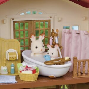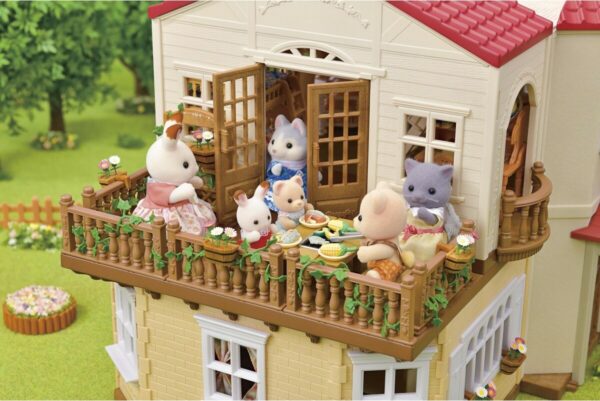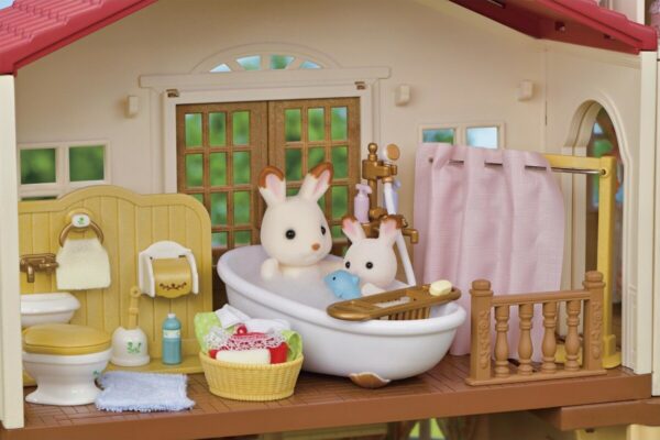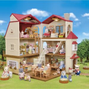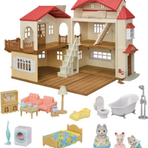 This set contains the Red Roof Country Home, furniture in original colors, and the Husky Girl, Husky Baby (crawling) and Chocolate Rabbit Baby (sitting), all in special outfits. The attic has a slide-out ladder! It is a big house that can be opened up for play and has lamps that light up. You can change the layout of the house by removing the rooms and roof. With the attic on top (a secret playroom for the babies!) the house is three stories high. With so many types of furniture and figures, the fun never ends! Comes with a letterbox and a letter to put in it! Combine with other furniture and figures (sold separately) to act out even more stories.
