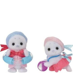 The Seal Family have cute, round features. They have distinctive eyebrow-like markings, dimpled ears, and whiskers around their mouths. This set contains the father, mother and babies, along with pool accessories. The babies have a soft, fluffy texture. They are wearing cute marine-style clothes. Each accessory can be used with the figures.