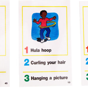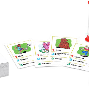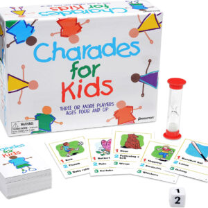 Encourage self-expression and social confidence with a classic game of Charades that’s designed especially for kids! With three levels of clues, kids of all ages can participate. Each card has a clue with a picture, so no reading is required. Younger players can act out a toothbrush, a cat or a bumble bee! Older children can read the simple words and phrases and act out actions like eating spaghetti or playing guitar. This game is great for 3 or more family members to play together as they try to guess the charade before time runs out!