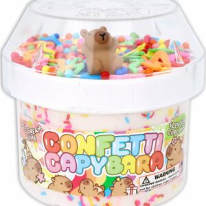 Get ready to party with confetti capybara! This fun-tastic ice cream slime is rolled with birthday cake sprinkles & scented like cupcake! Includes a cute capybara charm and rainbow confetti shaped fimos!