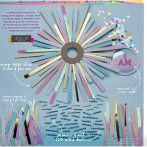 It’s all the little things combined that make you extraordinary! Celebrate yourself with a stunning work of art as unique and special as you are. Create the flower design with iridescent foil, gold foil, and colorful strips, then personalize it with over 250 words that describe YOU. Finish it off with a shaker bubble filled with metallic confetti to let your personality shine.