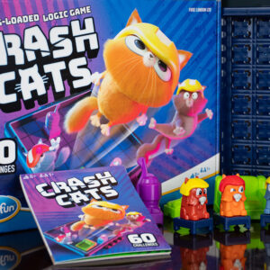 Put on your helmets and get ready for crashing cats chaos! This spring-loaded, action-packed logic game is purr-fectly entertaining to play and satisfying to solve. The solo player works to solve 60 challenges, trying to keep one of the 3 interchangeable Crash Cats in the living room (and avoid the 5 obstacles) while the other 2 cats go flying. For 1 player.