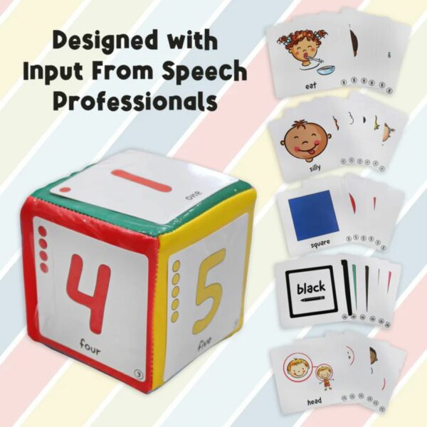Introducing our Speech Learning Cube—a dynamic, interactive playset designed to boost children’s speech development. This kit includes a foam cube, a travel booklet, 2 sheets of fastener dots, 12 blank cards, and 54 double-sided cards with various themes. The foam cube adds a playful twist to learning; insert cards into its pockets, roll the dice, and say the word facing up. It turns learning into an engaging game, promoting visual word recognition and speech development. Our kit is adaptable to your child’s goals, with fun graphics. Personalize with 12 blank cards featuring your child’s pictures for tailored speech development. Fastener dots make customization easy. The travel booklet ensures consistency in your child’s learning journey, and it’s handy for school or daycare. This comprehensive playset makes speech development enjoyable for children of all communication levels.