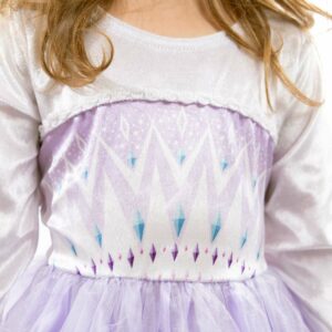 Your little one will be ready to rule over their enchanted kingdom and find magical friends in their new Deluxe Ice Coronation dress up. This dress is made with a durable stretch velvet bodice to accommodate various body sizes and shapes, a beautiful diamond foil print design, no-shed glitter, shimmery organza overskirt, and a sewn on cape to complete the beautiful princess attire.