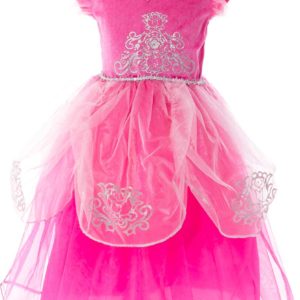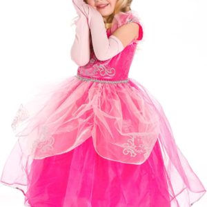 This elegant pink princess dress is embellished with silver trims and accents. The bodice is made from soft velvet and finished with a beautiful silver glitter rose motif. This rose motif is carried on to the gathered peplum of the dress, which sits over the voluminous organza skirt. Silver gems have been delicately placed along the neckline to complete this one of a kind pink princess dress. Size L
