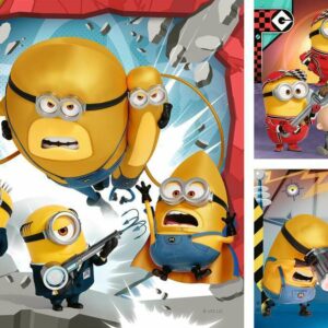 Celebrate those funny little yellow Minions featured in our “Despicable Me 4” puzzle trio! When Felonious Gru and his family are forced to change their identities and relocate to a new town, most of the Minions are taken in by the Anti-Villain League. Five of them Dave, Mel, Gus, Tim and Jerry are chosen to receive superpowers and are transformed into the Mega Minions! Will the Minions be able to rescue Gru Jr. from the villains in time? Your young fan will surely know! Banana!