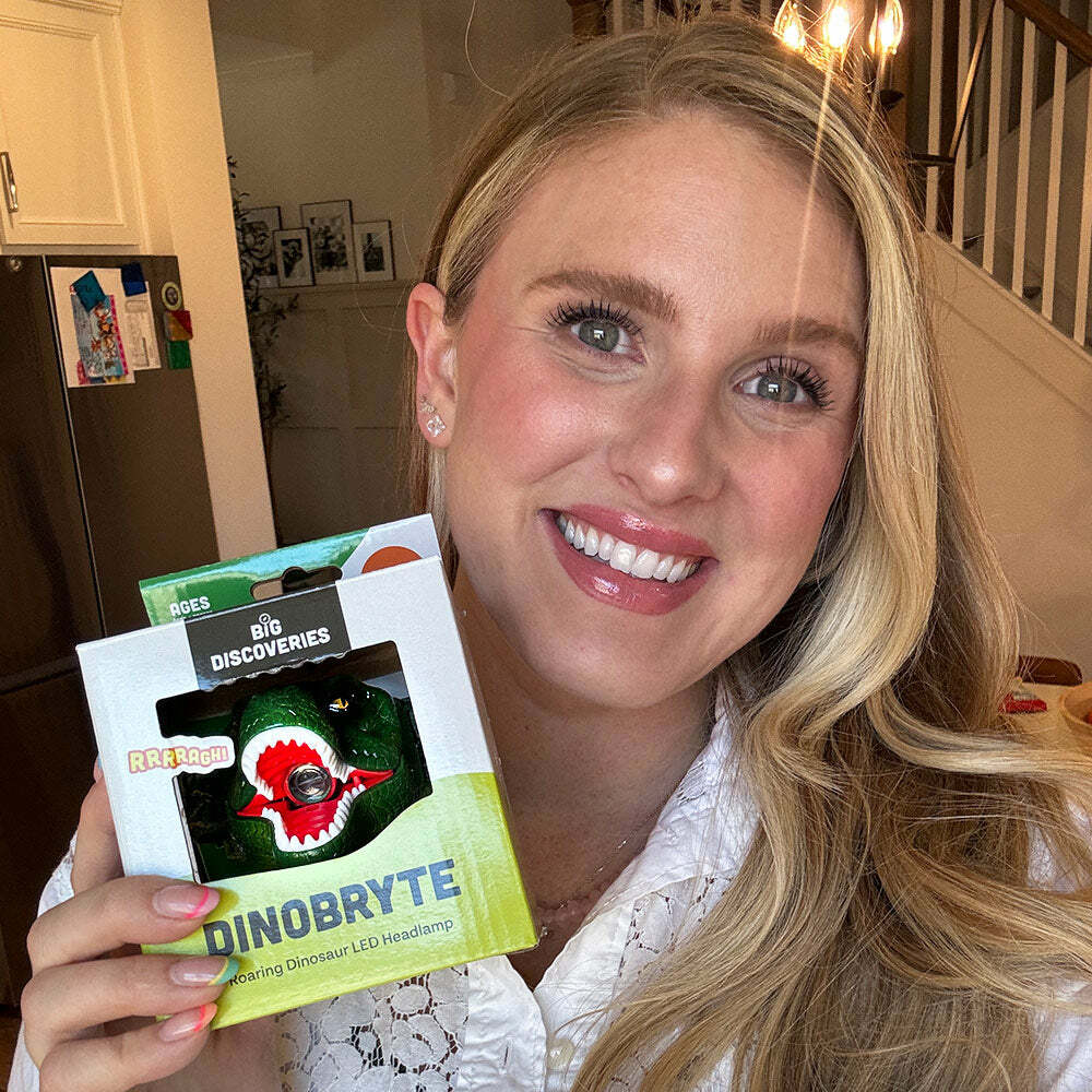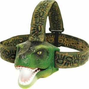 Easily press DinoBryte’s jaw to turn on the light and unleash three realistic roars! Once the dinosaur has finished roaring, the headlamp remains illuminated with a bright LED light powered by 3 AAA batteries (included). A protective lens focuses light and keeps the LED from breaking. The adjustable head strap fits both children and adults. Ages 6 and up.