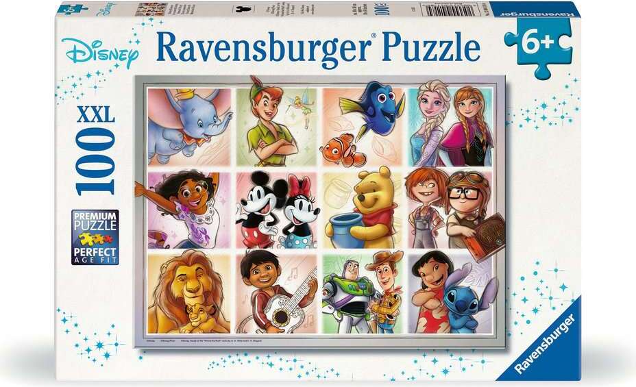 Put together this colorful and cheerful 100-piece puzzle featuring iconic Disney characters—what’s not to love? Join Dumbo, Peter Pan, Nemo & Dory, Elsa & Anna (Frozen), Mirabel (Encanto), Mickey Mouse & Minnie Mouse, Winnie the Pooh, Carl & Ellie (Up), Mufasa and Simba (The Lion King), Miguel Rivera (Coco), Buzz & Woody (Toy Story) as you immerse yourself in the world of Disney! This is a must-have for all Disney fans.