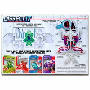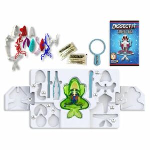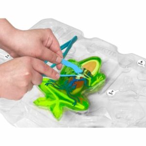 Eeew, it’s a frog! Take the gross out of these slimy creatures and reinforce STEM skills with a realistic experience of dissection without the use of a real animal! Curious kids and future biologists follow the instructions and use the safe plastic tools to cut open the wiggly, jiggly gel frog. They’ll learn about anatomy as they remove a complete plastic skeletal structure and a full set of organs. Includes a dissection table, 4 plastic tools (scalpel, tweezers, probe, magnifying glass), and 2 refill gel kits for reuse. The instruction manual also includes facts about these fascinating amphibians and a quiz.
