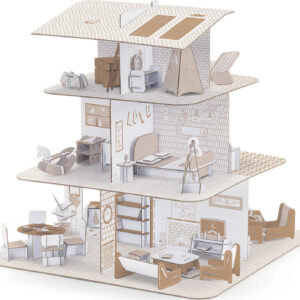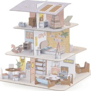 A creative kit to create the house of your dreams, fully furnished and accessorised! A two-storey house with more than 225 pieces of furniture and accessories (crockery, books, shelves, decorative objects, etc.) to be colored and assembled. All the creative pleasure of colouring combined with the activity of building objects in volume. For hours of creation and play!