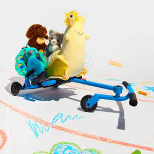Roll into active outdoor play this summer with EzyRoller! This multi-award winning ride on toy is propelled by wiggling feet back and forth. Kids ages 4+ learn to master speed and turns, having a blast while enjoying some sneaky full-bodied fitness. The EzyRoller Classic is durable and built for many years of play: with two extensions included to lengthen the footbar, kids are able to ride until they’re about 14 years old. Wearing a helmet is recommended (sold seperately); supports riders up to 5′ tall or 154 lbs max. Try setting up racetracks, obstacle courses, or relay races!