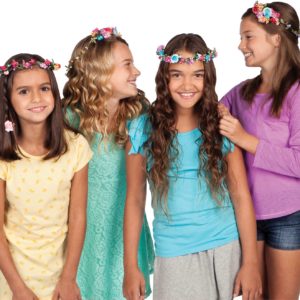 Make your own style statement with this magical fashion accessory. Fun and easy to make: just twist realistic paper roses, beautiful berry bunches and charming ribbon ivy around the twig bases. Add a little bling with the golden shimmer accent paint included. You decide on the color scheme and how you want to wear it – as a headband, crown or maybe across your forehead for a groovy retro look. Enough materials to make 4 adjustable crowns. From Creativity for Kids for ages 7+