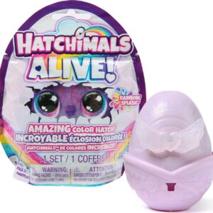 Hatch the rainbow with Hatchimals Alive Rainbow Splash! With your love and care, these playful Hatchimals come to life in a colorful new way: eggs that hatch in water, changing the water’s color to match the character inside! The 1-Pack includes 1 egg with 1 Hatchimals character inside, a pair of wings, nest, and a nurturing accessory. To begin hatching, remove the wings from the egg, fill the nest with water and place the egg inside. In seconds, the water changes color as your new friend starts revealing itself, cracking through the egg! Who will you hatch? Each character represents 1 of 6 colors of the rainbow: pink, orange, yellow, blue, green, or purple! Attach the wings on your Hatchimal and discover different accessories with every character for endless storytelling, including a bottle to recreate feeding, blocks for playtime, a rubber ducky for bath time and more! Collect all 18 Rainbow Splash toy figures (each sold separately). Those who enjoy action figures, small toys, dolls, and doll house play will love Hatchimals surprise toys. Fun birthday gifts, Christmas gifts and stocking stuffers or gifts for any occasion. Experience a splash of color with the Hatchimals Alive Rainbow Splash 1-Pack!