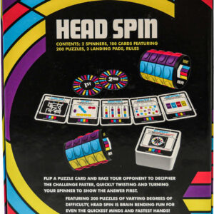 Head Spin is a fast-paced game where fidgety fingers race against masterminds. In each round, players will try to figure out the color order based on the prompt. Then they’ll show that answer on their spinner and place it on the landing pad. The first player to show the correct answer on their spinner wins the round.