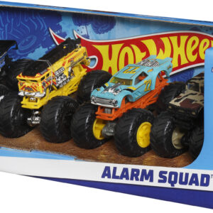 Do the mash, the monster mash! Hours of smashing, crashing, rolling, zooming storytelling play await with a set of 4 big-wheeled monster trucks. Each cool truck is impressively designed as a rescue vehicle and is ready to go head-to-head in battle: Police Car, Fire Truck, Night Shifter, and Humvee. Start your imagination engines, it’s a 4-alarm frenzy!