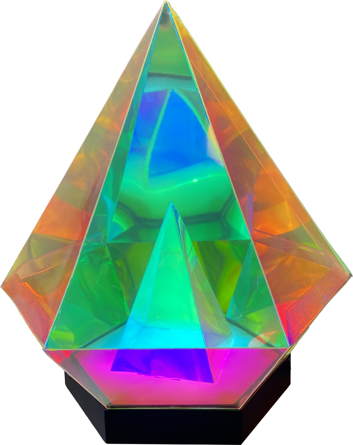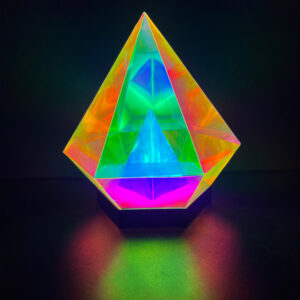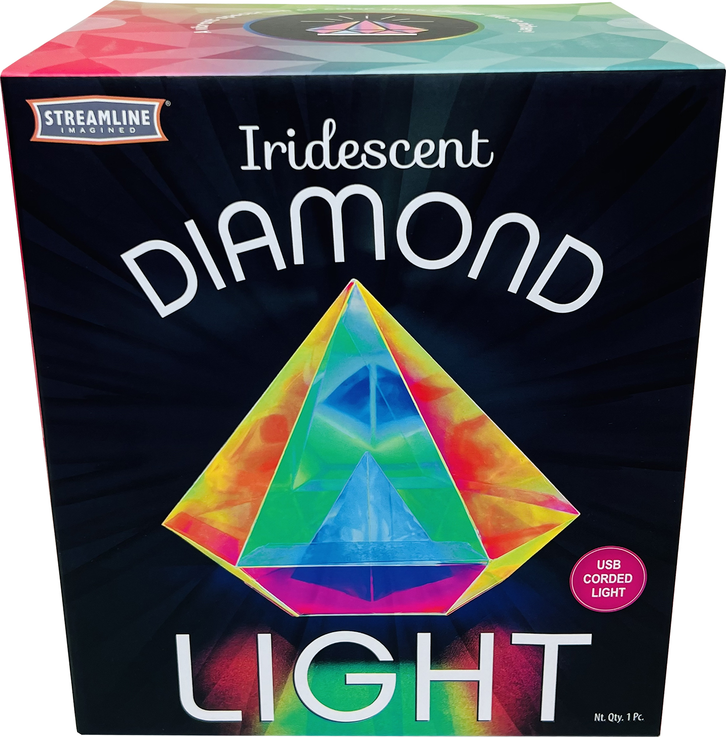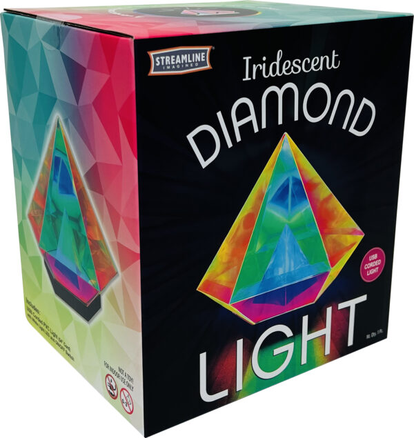 Light up your space with the glow of a gemstone. This iridescent diamond lamp plugs easily into a USB port and creates a magical glow in your environment with mesmerizing color and flair.
