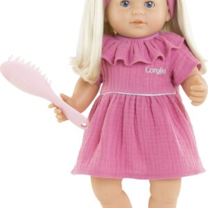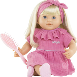 Jade is a 14-inch, soft-bodied baby doll with long blonde rooted hair and her own hairbrush. She has blue sleepy eyes that close when she is put down for a nap or at bedtime, and her head and limbs are made of soft, supple vinyl that is delicately scented with vanilla, a Corolle signature. Ages 3 and up