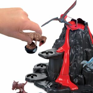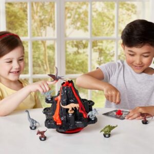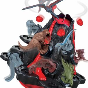 - Contents: Volcano game base, eight collectible dinosaur figures, including a Pteranodon to place on top, and a spinner