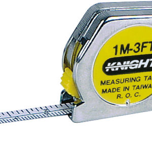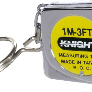 This metal tape measure housed in a 1.25″ box measures both metric & standard up to 3 feet or 1 meter. Features a lock button, key chain loop, and .25″ wide blade. 5yr+