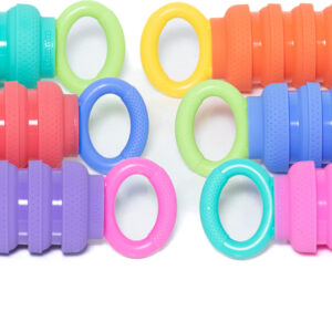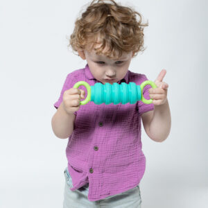 A brand new fidget for babies that’s so fun adults will want to play too! Discover a delightful crumple sound as this clever plaything is pulled apart and squished together. The food-grade silicone is safe for teething, and easy-grip handles and textured surfaces make Krumples Pully extra irresistible. This take-anywhere cause and effect toy is 7″ closed, 9″ open, and best of all… dishwasher safe! Available in 6 fun color combinations. Styles and selection may vary.