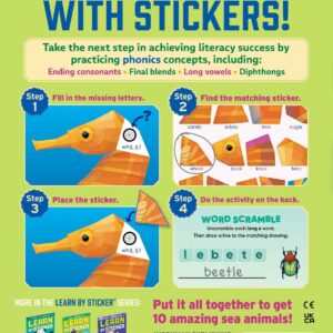 In Learn by Sticker: More Phonics, apply second grade-level phonics concepts (including long vowels, hard and soft sounds, final blends, and more) to complete words and determine where to place each sticker to create ten sticker images of beautiful sea animals. Plus, the back of each sticker page contains fun, phonics-related activities like solving crossword puzzles, decoding secret messages, and more.