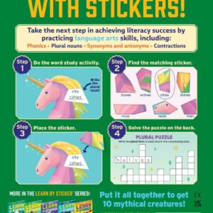 In Learn by Sticker: Word Study, apply third grade-level language arts concepts (including phonics, prefixes and suffixes, synonyms and antonyms, plural nouns, and more) to complete, write, or find words. Then use the answers to determine where to place each sticker to create images of ten beautiful mythical creatures. Plus, the back of each sticker page contains fun, critical thinking-based word study activities like riddles, crossword puzzles, and more.