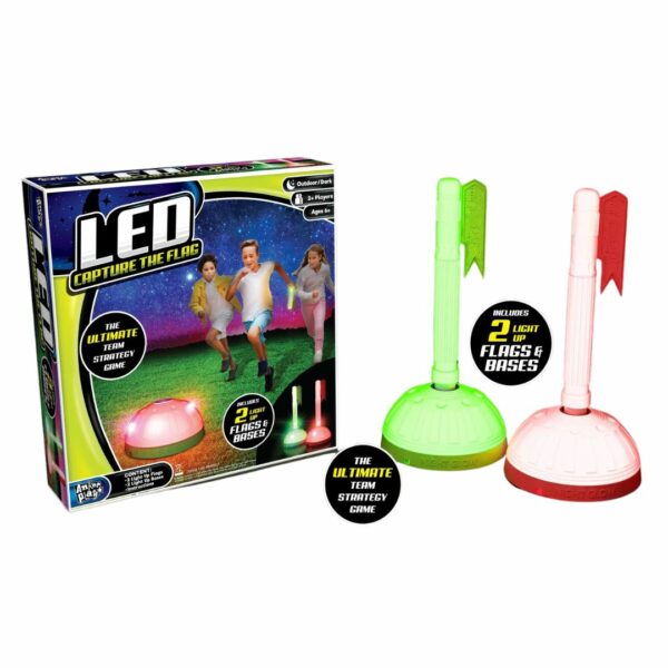 The ultimate team strategy game! Includes 2 light up Flags and Bases. Requires 6 LR44 button cell batteries (included) and 6 AAA batteries (not included). 2+ Players. Ages 6+