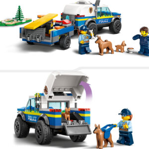 The LEGO® City Police animal set comes with a K9 SUV toy car with trailer and 3 dog-training apparatus, including a seesaw, jump bar and stepping paws, plus a grooming brush, torch, shovel and 2 toy dog treats. Just add the LEGO police officer minifigures and dog and puppy LEGO animals and let the fun begin.