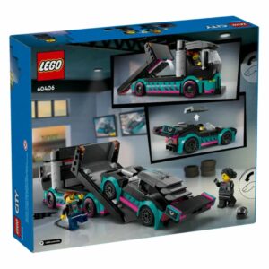 - Toy car transporter – Fans of race cars and trucks can enjoy hours of play with this LEGO® City Race Car and Car Carrier Truck building set for ages 6 and up
