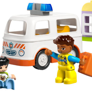 - Pretend play ambulance toy – Preschoolers role-play exciting real-life rescue scenarios with the Ambulance & Driver toddler toy, which comes with an ambulance and a small house build