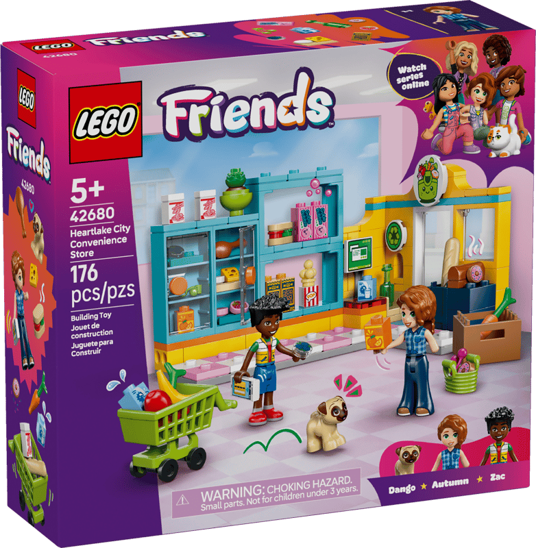 - SHOPPING PRETEND PLAY – The LEGO® Friends Heartlake City Convenience Store (42680) lets kids imagine fun trips to the mini-mart, stock the shelves, go shopping, pay for produce and recycle