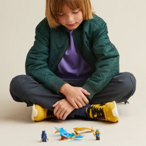 - Ninja action toy – Kids can place Rising Dragon Nya on the back of the blue dragon toy, slam down its golden tail and launch them both forward