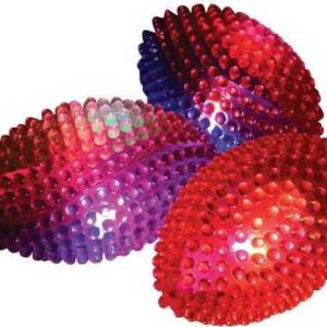 - Translucent colorful balls have knobby texture and light up when bounced