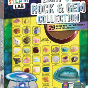 Packed with 29 unique rocks, gems, and minerals, this is the perfect kit to start or expand a rock collection. Build a color-changing light-up display with an agate slice: use it as a lamp, or study the stones up close with the included magnifying glass. Learn fun facts about each rock in the fully colored 32-page book including 6 experiments and activities with easy-to-find ingredients from home.