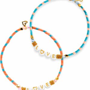Create 2 bracelets with names or messages using a collection of alphabet beads and charms. Keep them for yourself or give as a gift! For even more memories, two cards are included for writing love notes.