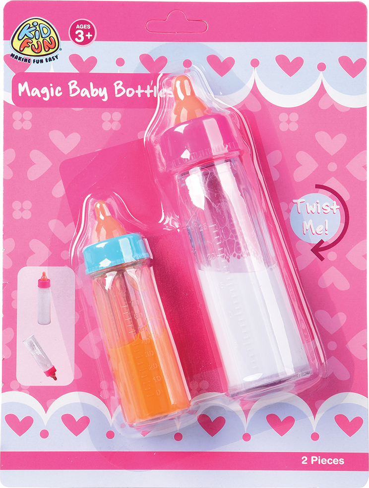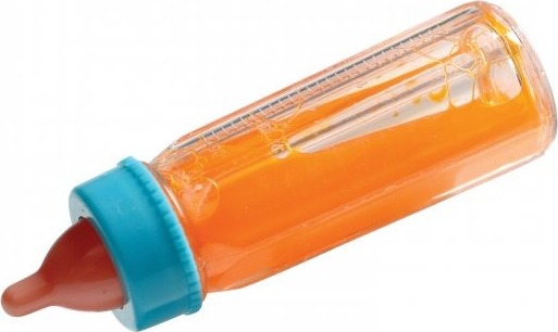 Tilt the bottle to feed your baby doll and watch the milk or orange juice magically disappear. Return the bottle upright the milk or orange juice will return.