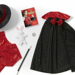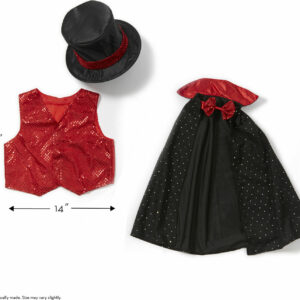 | Features | Magician dress-up outfit and accessories Includes cape with bow tie, vest with secret pocket, top hat with hidden compartment, wand, coin, rabbit, card with tricks Hand wash in cold water. Do not bleach. Drip dry. Do not iron. Do not dry clean. |