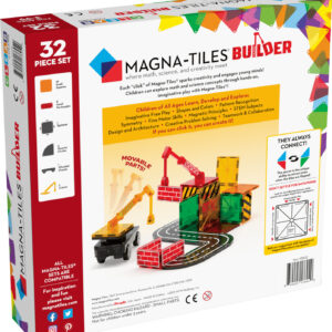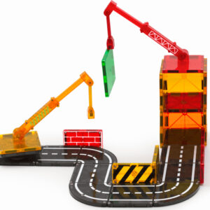 Watch your children’s abilities grow as their creations do with this Magna-Tiles Builder 32-Piece Set. This set includes two functional cranes that can raise, lower, extend, and swivel 360-degrees, as well as wheels, printed roads, and warning signs to enhance the accuracy of their construction zone.