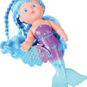 Colorful mermaid dolls with thick flowing hair. Head and arms move. Made of vinyl. 9.5″